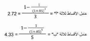 يتم حساب عامل الأقساط (annuity factor)على النحو التالي: