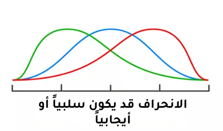الانحراف يقيس تماثل التوزيع. التوزيع الطبيعي متماثل وانحرافه يساوي الصفر. إذا كان توزيع مجموعة البيانات به انحراف أقل من الصفر، أو انحراف سلبي، فإن الذيل الأيسر للتوزيع أطول من الذيل الأيمن؛ يشير الانحراف الإيجابي إلى أن الذيل الأيمن للتوزيع أطول من اليسار.