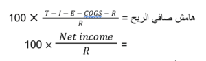 • هامش صافي الربح يساوي مقدار صافي الدخل الناتج كنسبة مئوية من الإيرادات.
